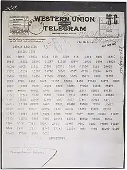 Дипломатическая телеграмма, также известная как дипломатическое сообщение или дипломатическая депеша, представляет собой засекреченные сообщения, которыми обмениваются с дипломатической миссией, как посольство, так и консульство, а также Министры иностранных дел.
