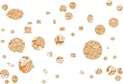 Также системы различают по распределению размеров частиц. Системы с одинаковыми по размеру частицами называют монодисперсными, а с существенно различающимися размерами — полидисперсными.