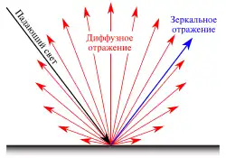 Диффузным отражение становится в том случае, если неровности поверхности имеют порядок длины волны (или превышают её) и расположены беспорядочно[2]. Критерием неровности поверхности по отражению является критерий Рэлея: