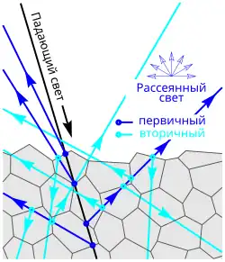 Возможно диффузное отражение и от гладких поверхностей, если в прозрачной среде материала поверхности имеются центры рассеивания света — неоднородности, например, полированный белый мрамор или поверхность молока.