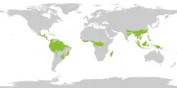 В Америке они произрастают от побережья Мексиканского залива в Мексике и юга Флориды (США), занимают полуостров Юкатан, большую часть Центральной Америки, острова Вест-Индии. Южноамериканские тропические дождевые леса (их ещё называют сельва) находятся в бассейне реки Амазонки (дождевые леса Амазонии — крупнейший дождевой лес), на севере Южной Америки, распространены на атлантическом побережье Бразилии.