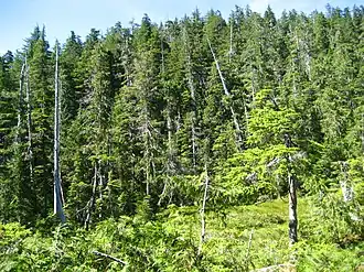 Тем не менее, необходимое годовое количество осадков зависит от таких факторов, как распределение осадков в течение года, температура в течение года и наличие тумана, а потому определение в других странах значительно отличаются. Например, австралийское определения умеренных дождевых лесов скорее эколого-структурное, а не климатическое: лесной полог закрывает крайней мере 70 % неба, лес состоит в основном из древесных пород, не требующих пожаров для регенерации, зато сеянцы способны расти в тени и в естественных прогалинах в пологе. Последнее условие, например, исключает часть умеренных дождевых лесов западной части Северной Америки, поскольку для Псевдотсуга Мензиса, одного из его доминирующих видов деревьев, для начала роста нового поколения деревьев нужно уничтожения существующего[27]. Североамериканское определения, в свою очередь, исключает часть умеренных дождевых лесов в других странах.