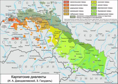 - 1 2 Ванько Ю. Русиньскый язык. Карпатьскы русиньскы діалекты. Класіфікація карпатьскых русиньскых діалектів : [арх. 11.09.2012] : [русин.] // Академія русиньской културы в Словеньскій републіцї. — Пряшів. (Дата обращения: 11 ноября 2019)