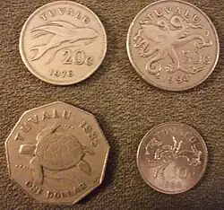 Королева Елизавета ll изображена на всех монетах Тувалу. Существовали призывы политиков упразднить монархию Тувалу и убрать её суверенные изображения на всех будущих монетах, однако большинством голосов было решено отказаться от этой идеи.