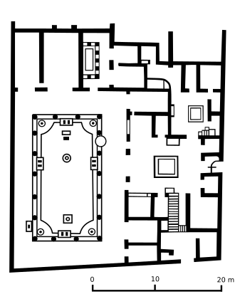 - Пинакотека (картинная галерея) и библиотека — могли располагаться в помещениях вокруг перистиля.