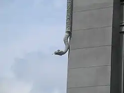 На стенах дома находятся бетонные головы носорогов, жирафов, львов, крокодилов, антилоп и прочих африканских зверей. Бетонные хоботы слонов, свисающие над тротуарами, использовались в качестве водосточных труб. На крыше расположились гигантские жабы, морские чудовища и нереиды с цепями вместо волос. На крыше используется высокий парапет, что позволяет практически полностью скрыть кровлю.