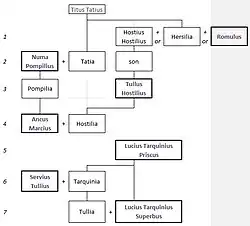 - ↑ Царь сабинян Тит Татий стал его соправителем, но умер раньше Ромула поэтому в список римских царей не включается.