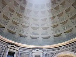 Восстанавливая Пантеон, начатый Агриппой и сгоревший, Адриан явно планировал идеальный круглый храм. Высота чашеобразного купола зрительно увеличена благодаря кессонам и комплювию, через который равномерно растекается свет. Снаружи прямоугольный пронаос перспективно организует цилиндрический объём. Мавзолей Адриана в плане продолжает схему Мавзолея Августа, но в более внушительных размерах, с учётом местоположения на берегу реки.