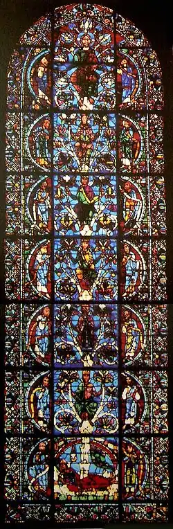 В нынешнем образе композиция появляется в 1144 году на витраже аббатства Сен-Дени. Витраж этот не сохранился, но известна его копия в Шартрском соборе (около 1450 года). Э. Маль предполагает, что автором композиции был известный строитель Сен-Дени аббат Сюжер. Впоследствии эта композиция получила широкое распространение как на латинском западе, так и на православном востоке. Развитие композиции шло в сторону как увеличения количества персонажей, так и введения новых сюжетов.