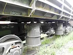 - ходовая часть: 2-, 3-, 4-осевые тележки, рама тележки с поперечной балкой и боковинами, колёсные пары с буксами на подшипниках, рессорные комплекты