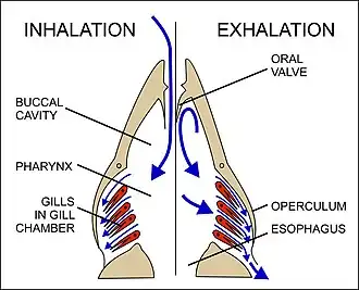 Дыха́ние (лат. respiratio) — основная форма катаболизма у животных, растений и многих микроорганизмов. Дыхание — это физиологический процесс, обеспечивающий нормальное течение метаболизма (обмена веществ и энергии) живых организмов и способствующий поддержанию гомеостаза (постоянства внутренней среды), получая из окружающей среды кислород (О2) и отводя в окружающую среду в газообразном состоянии некоторую часть продуктов метаболизма организма (СО2, H2O и другие). В зависимости от интенсивности обмена веществ человек выделяет через лёгкие в среднем около 5 — 18 литров углекислого газа (СО2), и 50 граммов воды в час. А с ними — около 400 других примесей летучих соединений, в том числе и ацетон. В процессе дыхания богатые химической энергией вещества, принадлежащие организму, окисляются до бедных энергией конечных продуктов (диоксида углерода и воды), используя для этого молекулярный кислород.