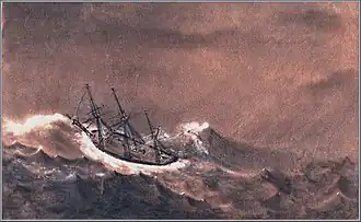 Бартелеми Ловернь. Шторм у берегов Новой Зеландии. Кругосветное плавание на «Астролябии», 1829