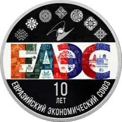 134. О выпуске в обращение памятной монеты Банка России посвящённой 5-летию ЕАЭС. 3 рубля, 2019 г., серебро. Дата обращения: 5 января 2020. Архивировано 5 января 2020 года.
