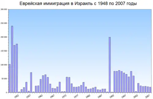 - ↑ Immigrants, by Period of Immigration, Country of Birth and Last Country of Residence (англ.) (pdf). CBS, Statistical Abstract of Israel 2008. Центральное статистическое бюро Израиля (2008). Дата обращения: 21 августа 2009. Архивировано 1 октября 2009 года.