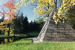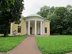 Павильон на острове Большого пруда, построенный в конце 1740-х годов по проекту С. И. Чевакинского и украшенный по эскизам Ф.-Б. Растрелли[17], был перестроен в 1794 году Д. Кваренги, а в 1817—1820 годах отремонтирован В. П. Стасовым. В XVIII веке павильон служил для музыкальных и танцевальных вечеров[18].