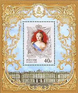 - В 2009 году Почта России выпустила почтовый блок, посвящённый Елизавете Петровне.