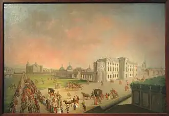 Коронационные торжества состоялись в апреле 1742 года и отличались беспрецедентной пышностью. Коронация проходила в Москве. В качестве напоминания о них в Москве сохранялись до 1927 года Красные ворота[18], под которыми проезжал коронационный кортеж. Уже тогда в полной мере проявились любовь государыни к ярким зрелищам и стремление утвердиться в народной памяти. Была объявлена массовая амнистия, вечером стены Кремля сотрясли залпы салюта, фасады окрестных домов были затянуты парчовой материей. В память о торжествах был издан «Коронационный альбом Елизаветы Петровны». В день коронации была поставлена опера «Милосердие Титово», что подчёркивало начало милосердного правления Елизаветы Петровны.