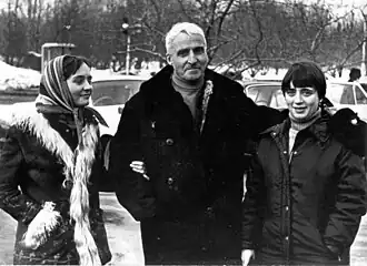 - Первый муж — Семён (Сарио) Петрович Гудзенко (1922—1953), поэт, журналист[4].