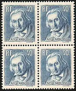 В 1934 году в ознаменование столетия со дня смерти механика Жозефа Мари Жаккара Французское почтовое отделение выпустило марку с его изображением[15].