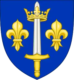 В 1429 году король Франции Карл VII Победитель пожаловал за особые заслуги Жанну д’Арк, её братьев с потомками как семейство Дю Лис с гербом, который описывался при блазонировании: «В синем поле серебряный меч с золотой рукоятью столбом, поддерживающий золотую корону и сопровождаемый двумя чисто золотыми лилиями»[21][22].