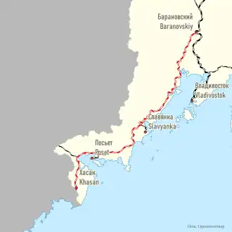 Железнодорожная линия Барановский — Хасан — около 240 км Дальневосточной железной дороги в пределах РЖД. Он ведет от Транссиба на юге Барановского вдоль Тихоокеанского побережья до северокорейской границы в Хасане. Его продолжением является железнодорожная линия Хасан-Раджин.