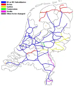 Несмотря на это Nederlandse Spoorwegen остается основным оператором на рынке железнодорожных перевозок.