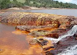 Гидротермальный источник с железистой водой. Оксиды железа окрашивают воду в бурый цвет