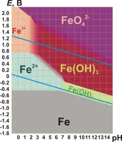 Электродный потенциал Fe←Fe3+ −0,04 В