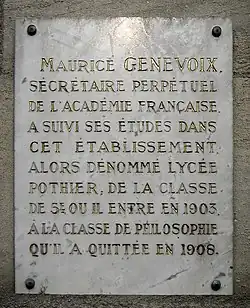 С 1946 года и до смерти в 1980 году — один из сорока́ «бессмертных» членов Французской академии, а в 1958—1973 годах — её непременный секретарь (председатель). 11 ноября 2020 года по решению Президента Французской Республики Эмманюэля Макрона прах Мориса Женевуа был перенесён в Парижский Пантеон.