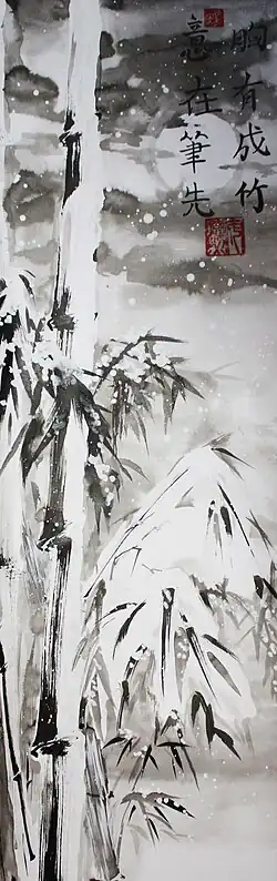 Форма мазка — это линия, которая начинается и заканчивается с точки, так же, как основные направления китайской каллиграфии — горизонтальная линия, вертикальная линия . Традиционно этот тип мазков используется для рисования бамбука. |