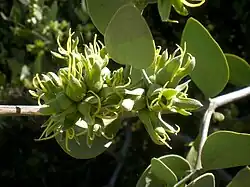 Растение двудомное, ветроопыляемое. Цветки мелкие, лишённые лепестков. Мужские цветки несут 10—12 тычинок, женские — пестик из трёх плодолистиков с тонкими опадающими столбиками, которые по всей своей длине усажены сосочками. Цветение происходит весной после влажного осенне-зимнего сезона. Завязь верхняя, с одним семязачатком в каждом из трёх гнёзд. Плод — трёхгранная коробочка, вскрывающаяся вдоль спинок гнёзд (локулицидная).