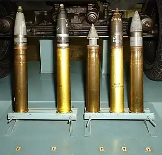 Справа: бронебойные 76 мм снаряды в разрезе: