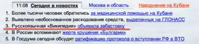 - ↑ Русская Wikipedia не работает, протестуя против поправок в интернете Архивная копия от 10 июля 2012 на Wayback Machine — РИА Новости, 10 июля 2012, 04:38.