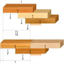 В идеальном случае с только одним идеально прямоугольным блоком на каждом уровне свес равен ширины блока[2]. Эта сумма составляет половину частичной суммы гармонического ряда. Поскольку гармонический ряд расходится, максимальный свес стремится к бесконечности с ростом , т.е. можно достичь любого сколь угодно большого свеса при достаточном количестве блоков. В каждом конкретном случае максимальный свес приблизительно равен , т.е. пропорционален натуральному логарифму числа блоков.