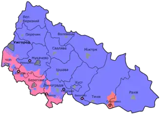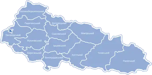 - ↑ Закарпатська область - Райони. Дата обращения: 16 февраля 2023. Архивировано 27 января 2023 года.