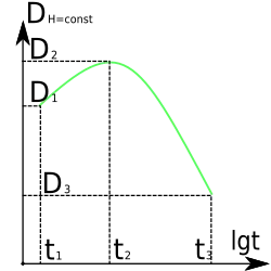 Типичная зависимость плотности почернения фотоматериала от выдержки при постоянной экспозиции показана на рисунке 1.