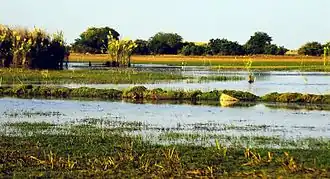 Речная сеть густая и разветвлённая. Свыше 4/5 территории страны принадлежит бассейну р. Замбези. От своего истока на северо-западе Замбии р. Замбези сначала выходит за пределы запада, но к югу от 12°30' ю. ш. протекает по юго-западной части страны и вдоль её южной границы, принимая крупнейшие притоки Кафуэ и Луангва. Ниже впадения р. Чобе (Линьянти) на Замбези расположен водопад Виктория, один из крупнейших в мире по ширине[6].