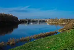| Вид на Даугаву вверх по течению с Каменного моста в Риге летом 2011 года | |