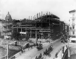 В начале 1905 года бельгийский коммерсант С. Эсдерс и голландский подданный Н. Схейфальс получили разрешение построить на месте дома № 15 по Гороховой улице пятиэтажное здание с мансардой для размещения в нём своего торгового дома. Здание по проекту Владимира Липского и Константина де Рошфора было построено в 1906—1907 годах. Его основу составлял металлический каркас весом 70 000 пудов (1120 тонн), изготовленный заводом Э. Тильманса[3]. Это один из первых опытов использования в городе подобной конструкции[4]. Прообразом огромного магазина послужил дом компании «Зингер», сооруженный на Невском проспекте архитектором Павлом Сюзором[3].