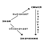 Взаимосвязь этих характеристик можно графически представить в виде семантического треугольника.
