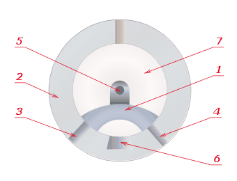 Цилиндрический золотник по принципу действия аналогичен коробчатому, но полностью уравновешен. Такой золотник обычно имеет два поршня 1 и 2 на общем штоке 3, перемещающихся в снабжённой окнами втулке 4. В системах гидравлического регулирования высокой точности цилиндрическому золотнику иногда сообщают непрерывное вращательное движение вокруг оси или колебательное вдоль оси с целью повысить чувствительность системы путём замены трения покоя трением скольжения.