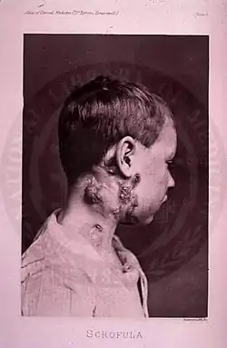 Проявления золотухи, локализованные на шее больного, Atlas of Clinical Medicine, 1893