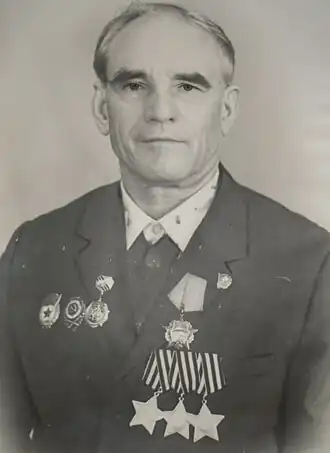 - ↑ На момент представления к награждению орденом Славы 1-й степени