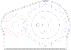 Зубчатая передача — трехзвеньевый механизм по передаче мощности вращением, в котором два подвижных звена являются зубчатыми колёсами (или зубчатым колесом и зубчатой рейкой), образующими на базе общего неподвижного звена вращательную (или поступательную) зубчатую пару зацепления.[1]