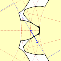- haP+hfP — высота зуба тёмного колеса, x+haP+hfP — высота зуба светлого колеса