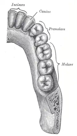 Постоянный прикус состоит из 8 резцов, 4 клыков, 8 премоляров и 8—12 моляров. В редких случаях наблюдаются дополнительные, сверхкомплектные зубы (как молочные, так и постоянные)[1]. Отсутствие третьих моляров, называемых «зубами мудрости» является нормой, а сами третьи моляры увеличивающимся числом учёных уже считаются рудиментом, но это на данный момент спорный вопрос.