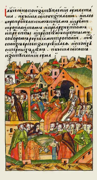 79. Геронтий провёл крестный ход вокруг собора против солнца, по мнению же великого князя, крестный ход надлежало провести «посолонь», то есть, от востока к западу.