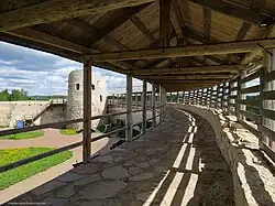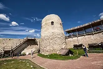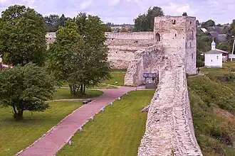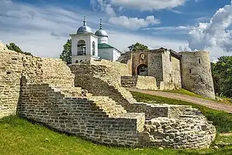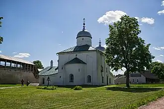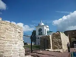 Внутри крепости, у главного входа, расположен Никольский собор — памятник архитектуры первой половины XIV века. в Псковских летописях собор впервые упоминается под 1341 годом. В XVI—XVII веке к собору с юга пристраивается бесстолпный придел Спаса Преображения. В 1849 году на месте небольшого притвора с западной стороны была сооружена колокольня, которая сменила обветшавшую звонницу на Колокольной башне. Храм является действующим с момента освящения по настоящее время. С 1920 по 1940 год являлся старейшим православным храмом в Эстонской Республике[15].
