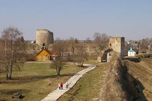 • В 1903—1904 году Николай Рерих со своей женой совершили поездку по древнерусским городам, изучая памятники зодчества, фрески и иконы. Посетив Изборск, художник был заворожён красотой здешних мест. В своём дневнике он записал[16]: