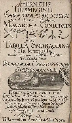 - ↑ Приложение. Историческая справка об Изумрудной Скрижали // Томберг В. Медитации на Таро. Путешествие к истокам христианского герметизма. — М.: София, 2000. — С. 567—568.